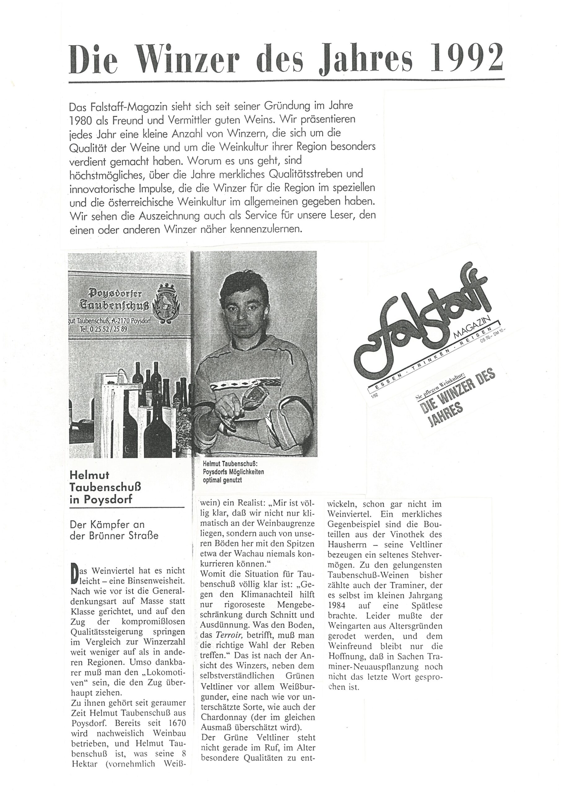 Erster, komplett in Eigenregie von Markus Taubenschuss produzierter, Blanc de Blancs Sekt wird auf den Markt gebracht. Dieser erhält auf Anhieb höchste Auszeichnungen.